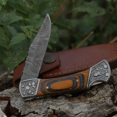 - Blade: Hand-forged Damascus steel with distinctive layered pattern