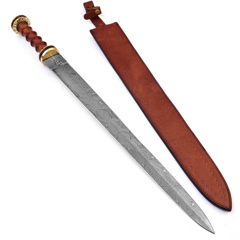 Roman Invasion Hand-Forged Damascus Steel Gladius Sword with Sheesham Wood Handle & Leather Sheath