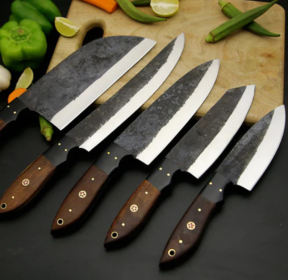 Hand-Forged Kitchen Chef Knife Set – High Carbon Steel with Wooden Handles