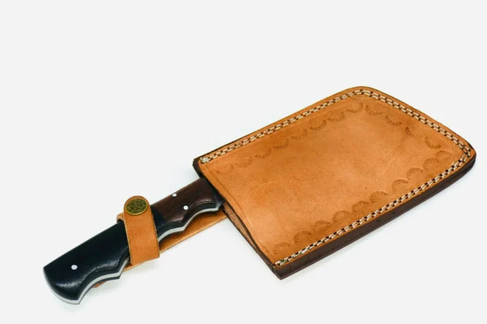 - Sheath & Accessories: Solid cowhide leather sheath, lanyard, and leather handle cover included
