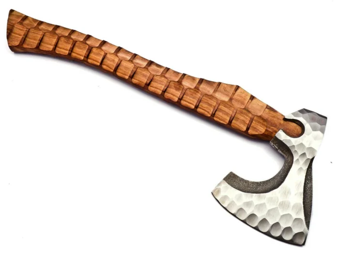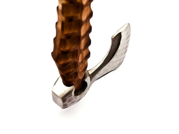 - Premium Ash Wood Handle – Strong, comfortable grip with detailed pyrography