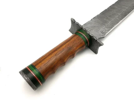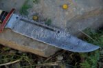 Handmade Damascus Hunting Bowie Knife – 15.5″ Rosewood & Damascus Handle with Leather Sheath