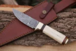 9″ Damascus Steel Skinner Hunting Knife – Stag Horn Handle with Leather Sheath