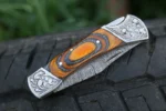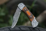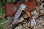 Be the first to review “Daud Blades – Hand-Forged Damascus Folding Knife | Blue & Olive Wood Handle, Stainless Steel Clip, Leather Sheath” Cancel reply