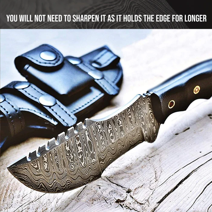 - Premium Damascus Steel Blade – Double-edged sharpness with stunning patterns for performance and beauty.