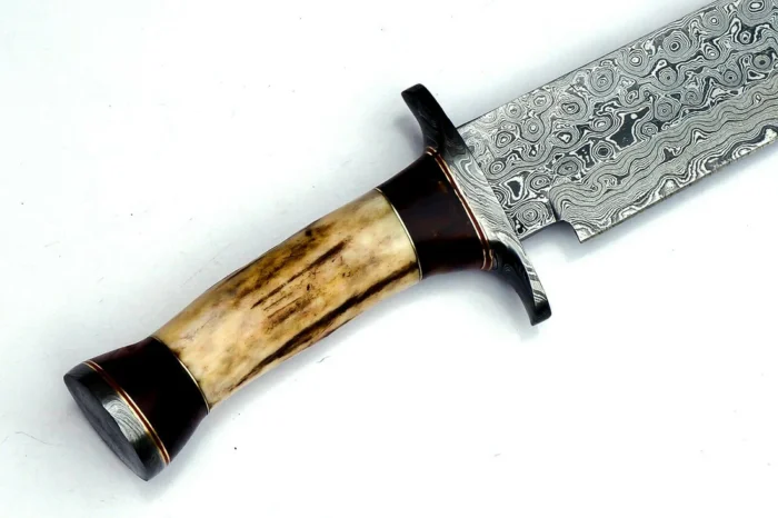 - Premium Elk Horn & Damascus Handle – Ergonomically designed for comfort, control, and a striking look.
