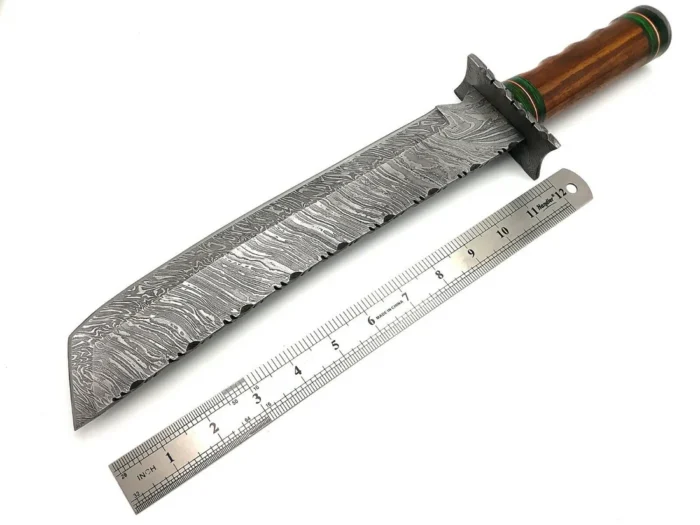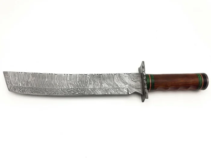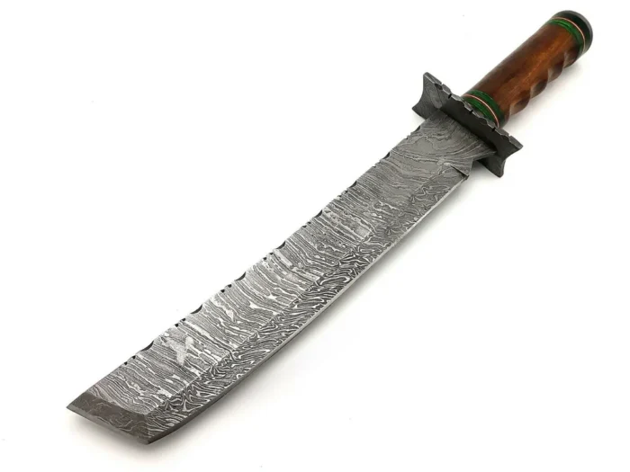 Be the first to review “Daud Blades Handmade Hunting & Bushcraft Machete – 17.5″ Damascus Steel Blade with Rosewood Handle & Leather Sheath” Cancel reply