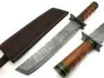 Handmade Damascus Hunting Bowie Knife – 15.5″ Rosewood & Damascus Handle with Leather Sheath