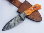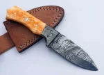 Daud Blades SK-40 – Handmade Damascus Hunting/Utility Knife | 8″ Overall, 4″ Blade | Colored Bone Handle + Leather Sheath