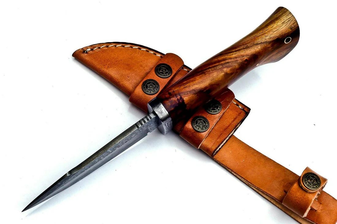 - Handle Material: Walnut wood & Damascus steel with brass rivets