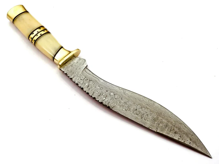 Handmade Kukri Knife – 17.5″ Damascus Blade with Exotic Camel Bone & Brass Handle + Leather Sheath