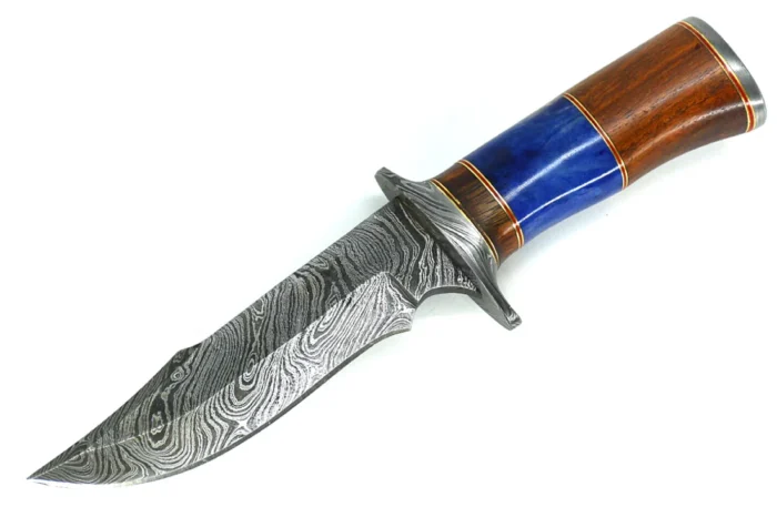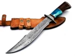 Handmade Damascus Hunting Bowie Knife – 15.5″ Rosewood & Damascus Handle with Leather Sheath
