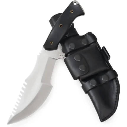 Daud Blades Survival Hunting Knife – Full Tang Stainless Steel Blade with Black Micarta Handle & Leather Sheath