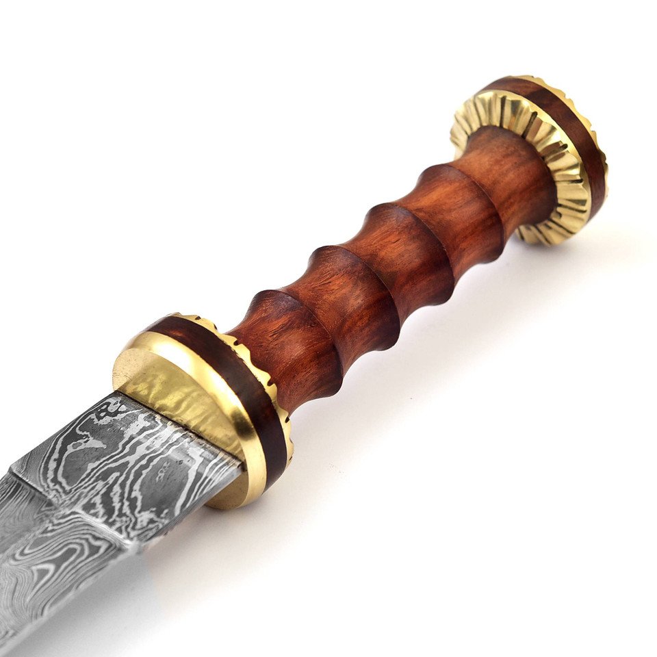 Roman Invasion Hand-Forged Damascus Steel Gladius Sword with Sheesham Wood Handle & Leather Sheath